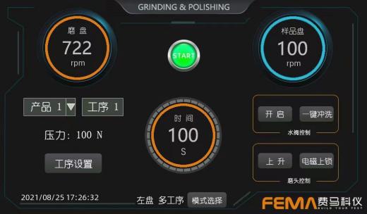 ◇ 多工序模式:可对样品进行命名,可对样品设置一整套研磨抛光流程,并能保存调用整套流程。选择样品后,上一道流程结束,自动进行下一道流程