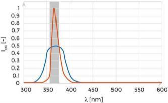 为了尽量减少电功率的损失 ,Fpress 30UV配备了专用的紫外线LED,这些LED展现出了极窄的发射光谱,并与UV201光固化树脂引发剂的吸收最大值最大化叠加,这可以降低电耗缩短固化时间。