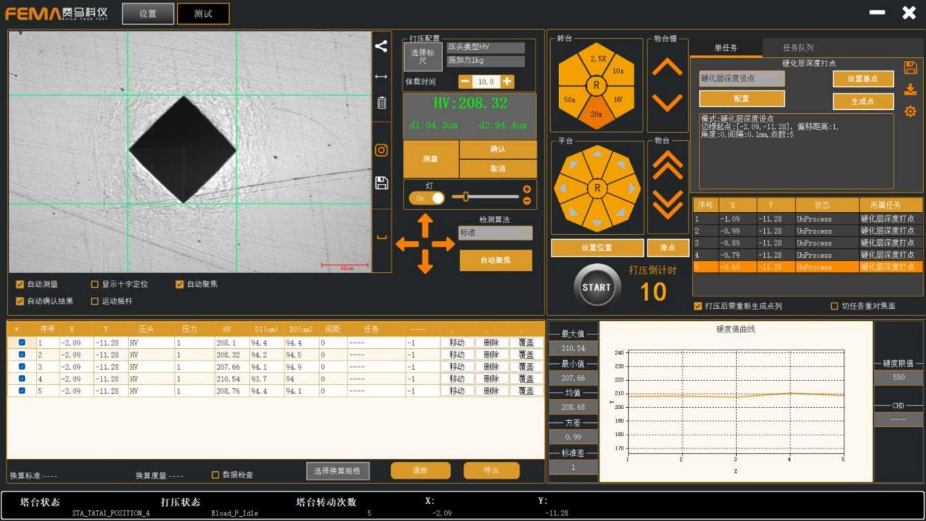 系统支持阵列、直线、硬化层平行线等多种测量点位生成模式。每种模式均配有独立的交互式设置窗口,用户可清晰直观地进行参数配置。该功能与CCD 实时成像及自动控制平台无缝协同,使得测量方案的规划与执行变得异常简便、高效。