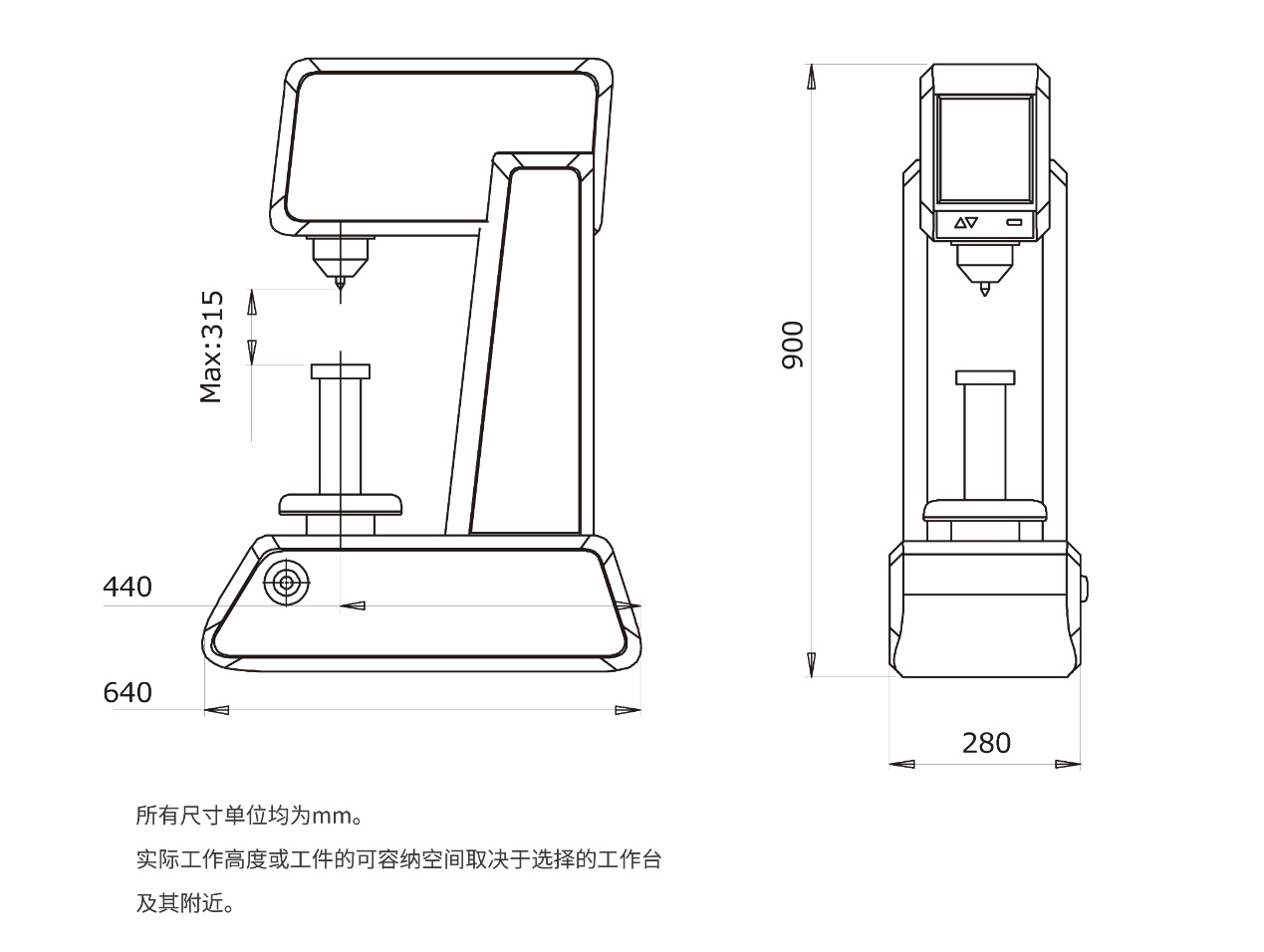 | 测试空间 | 最大纵高300mm,最大喉深200mm (从压头中线起) | 最大纵高300mm,最大喉深200mm (从压头中线起) | 最大纵高300mm,最大喉深200mm (从压头中线起) |