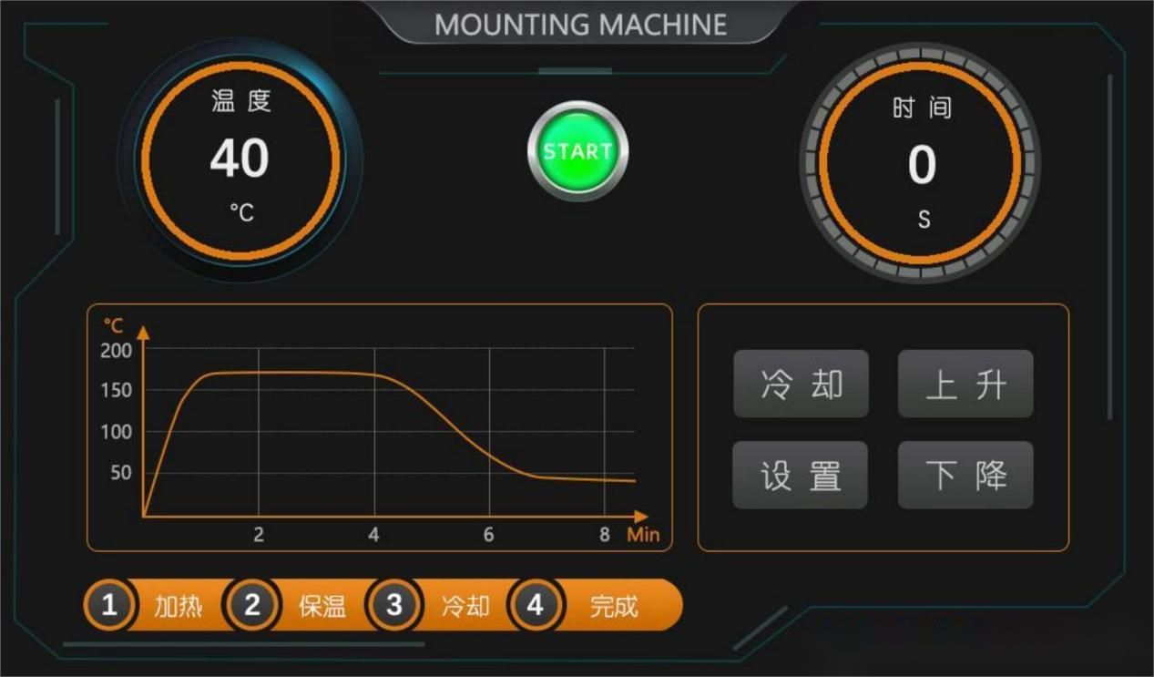 ◇ 先进的加热技术和优化的冷却系统,超短镶样时间,直径 30mm 样品约 6 分钟