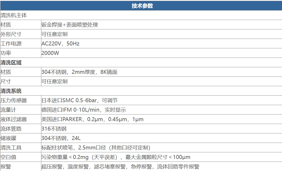快速达到空白或搜集残余污染物颗粒,可通过安装在槽体内的喷嘴对槽壁进行喷淋清洗。